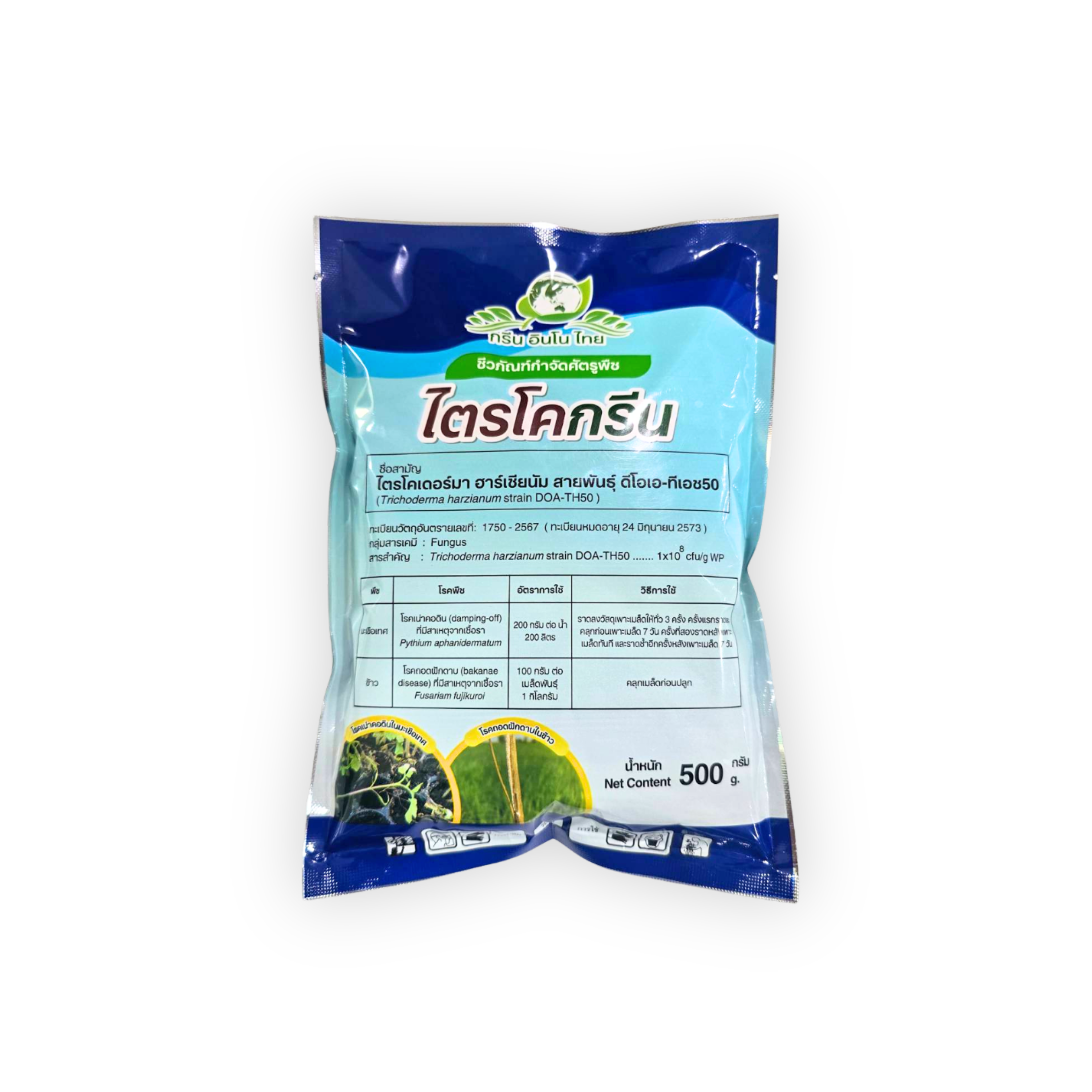 ชื่อทางการค้า: สารชีวภัณฑ์กำจัดศัตรูพืช ไตร-แท๊บ (TRI-TAB (Trichoderma asperellum strain NST-009)) |