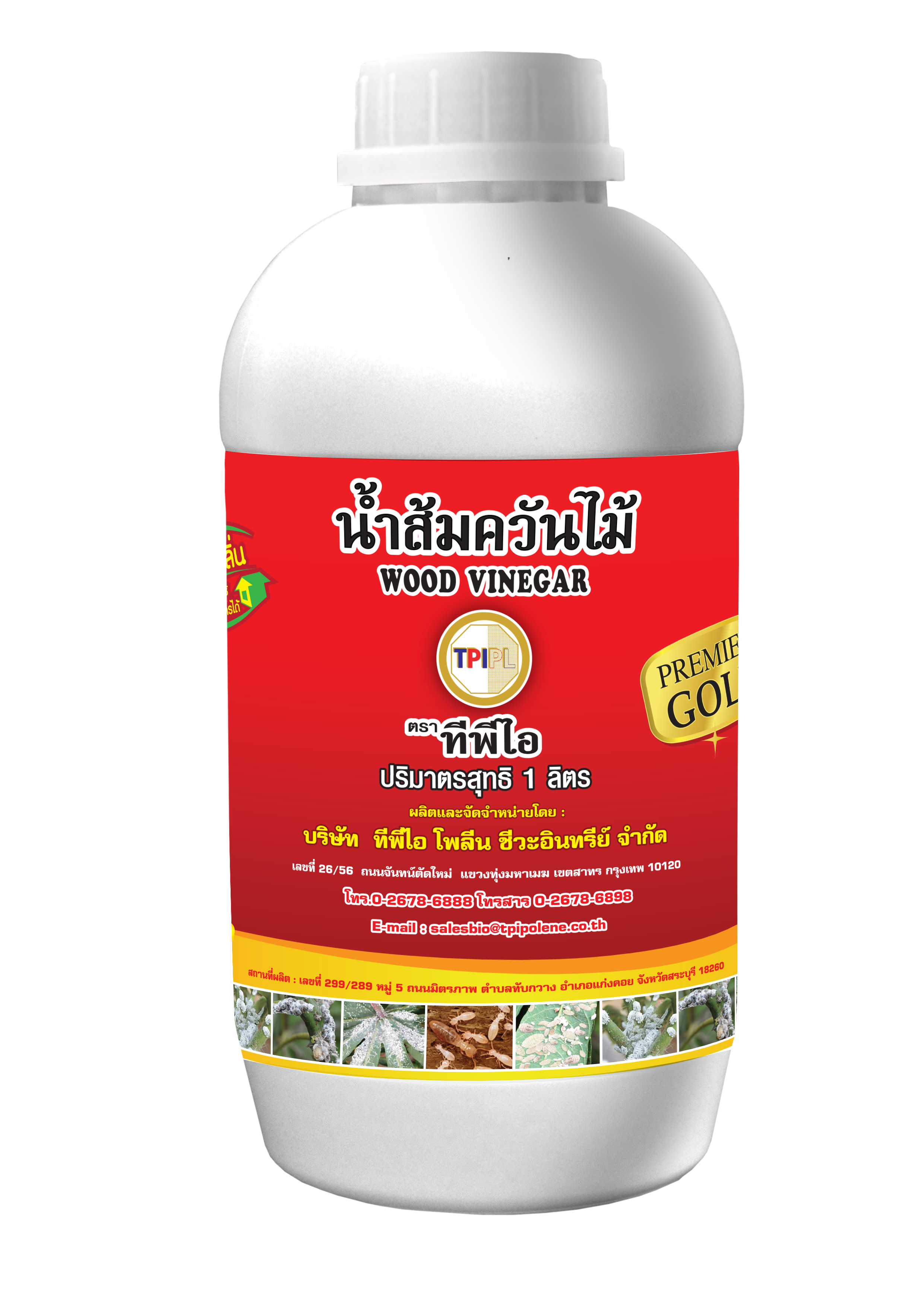 ชื่อทางการค้า: น้ำส้มควันไม้พรีเมี่ยมโกลด์ (TPI Premium Gold wood vinegar) |