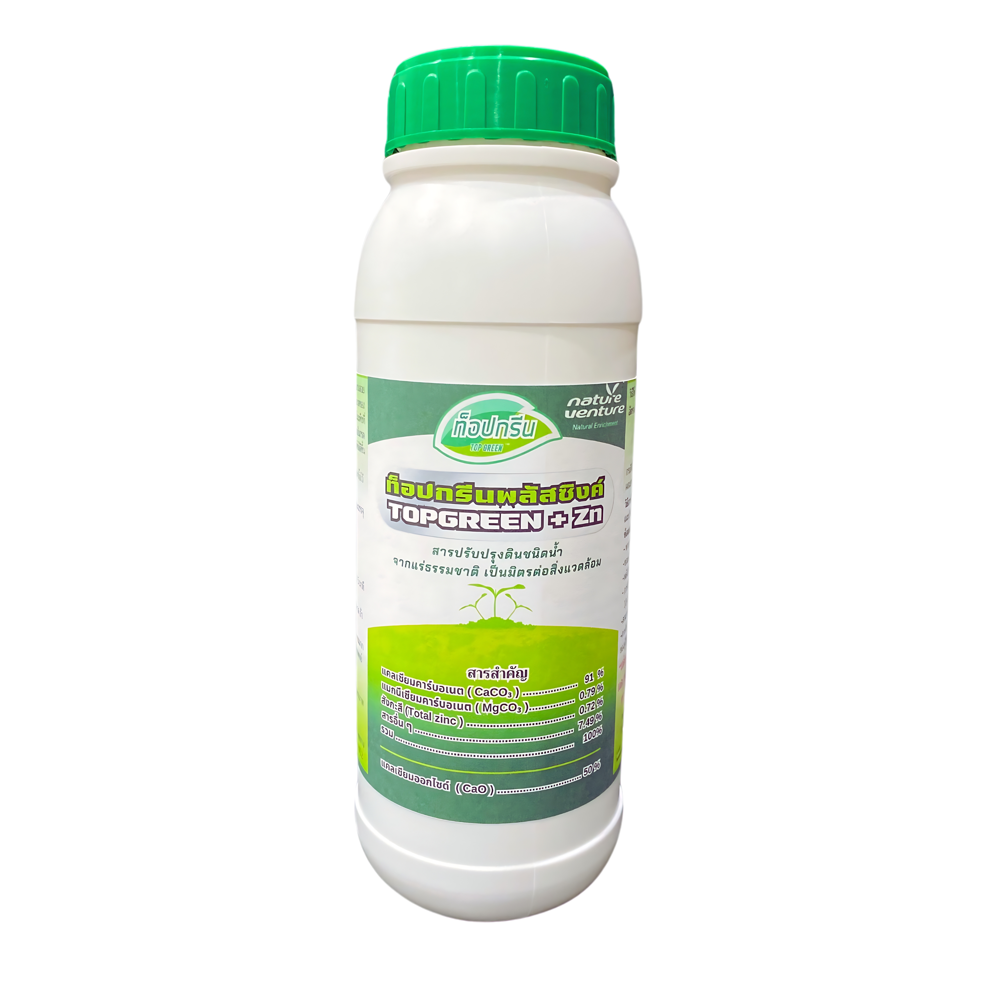 ชื่อทางการค้า: ท็อปกรีนพลัสซิงค์ สารปรับปรุงดินชนิดแขวนลอยจากแคลเซียมคาร์บอเนตเสริมธาตุสังกะสี (TOP Green Plus Zn Suspension of soil amendment comprising calcium carbonate and zinc) |