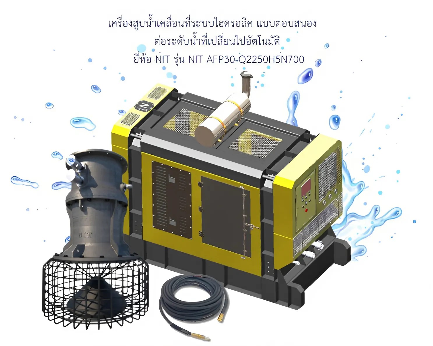 ชื่อทางการค้า: เครื่องสูบน้ำเคลื่อนที่ระบบไฮดรอลิก แบบตอบสนองต่อระดับน้ำที่เปลี่ยนไปอัตโนมัติ (Hydraulic Mobile Pump with Automatic Water Level Response) |