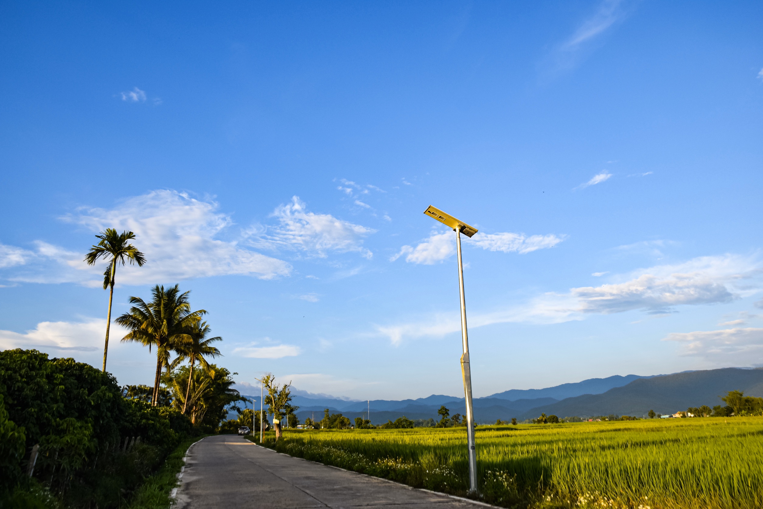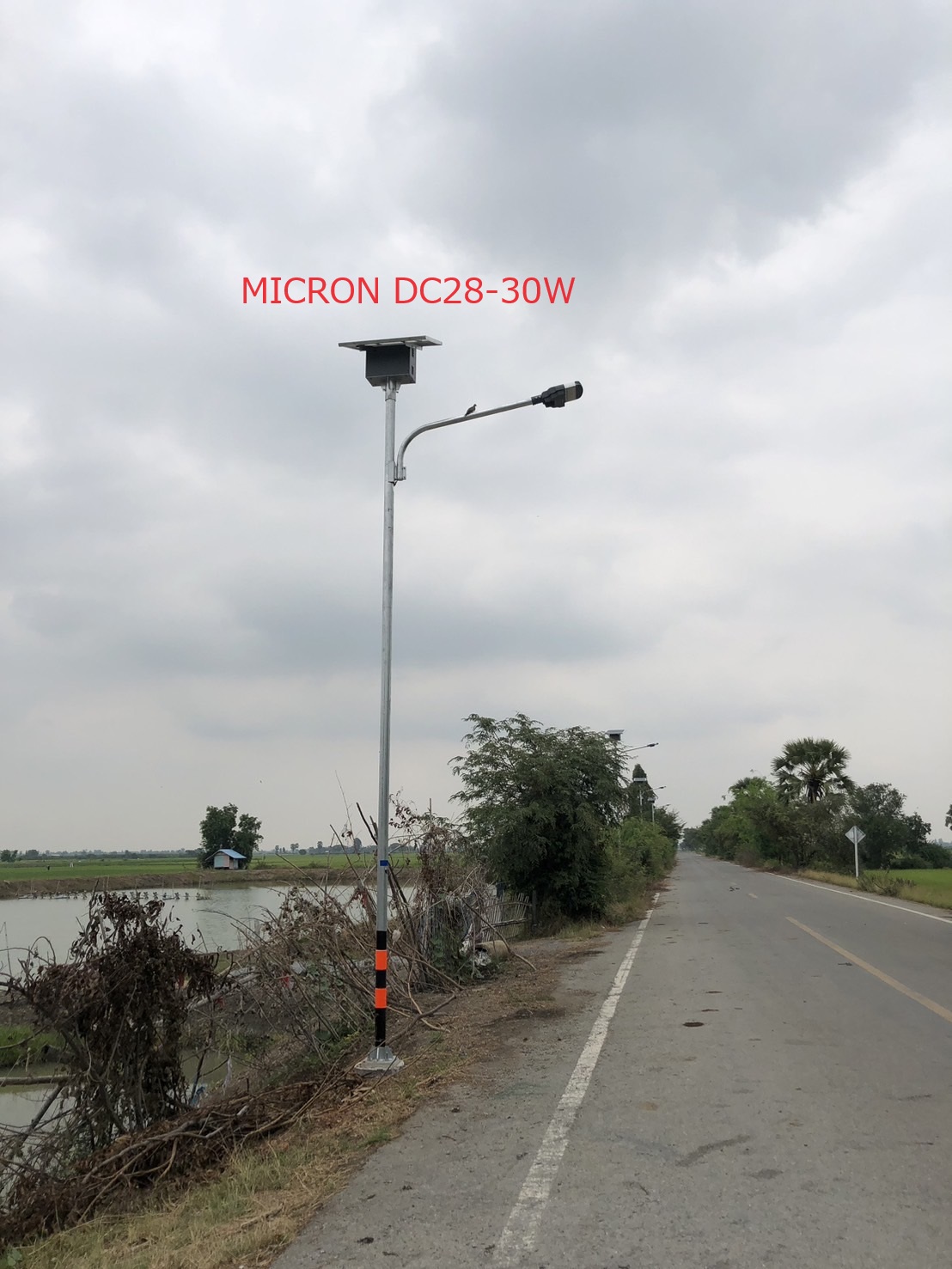 ชื่อทางการค้า: โคมไฟถนนแอลอีดี แบบเซลล์แสงอาทิตย์ ใช้พลังงานไฟฟ้ากระแสตรงจากแบตเตอรี่ (Solar powered LED Streetlight with direct current supply from energy storage) |