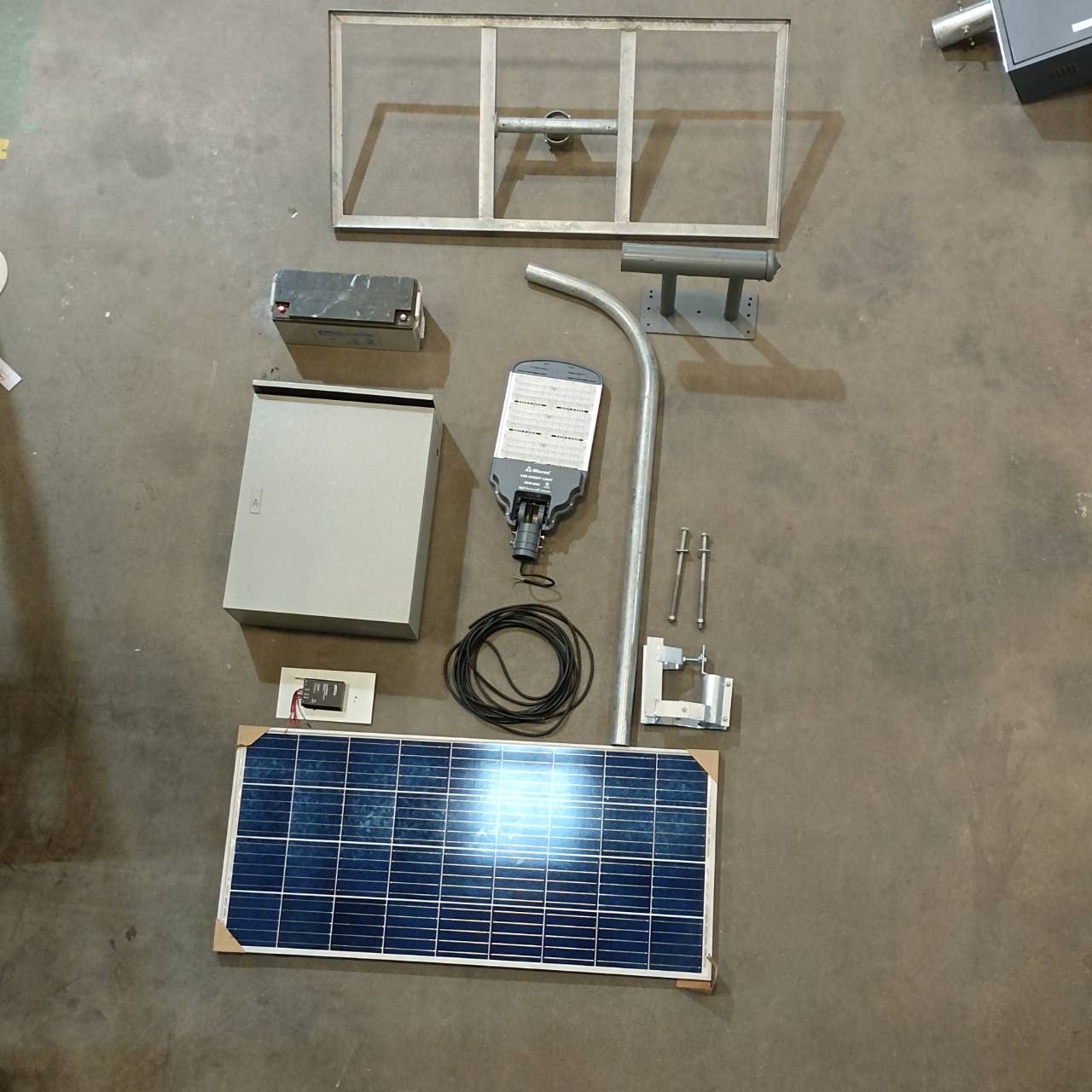 07020029 | ชื่อสามัญ: ชุดเสาไฟถนนโคมไฟแอลอีดี พลังงานแสงอาทิตย์ แบบกล่องบรรจุแบตเตอรี่ป้องกันการโจรกรรมพร้อมเลนส์แบบควบคุมทิศทางและความสว่าง