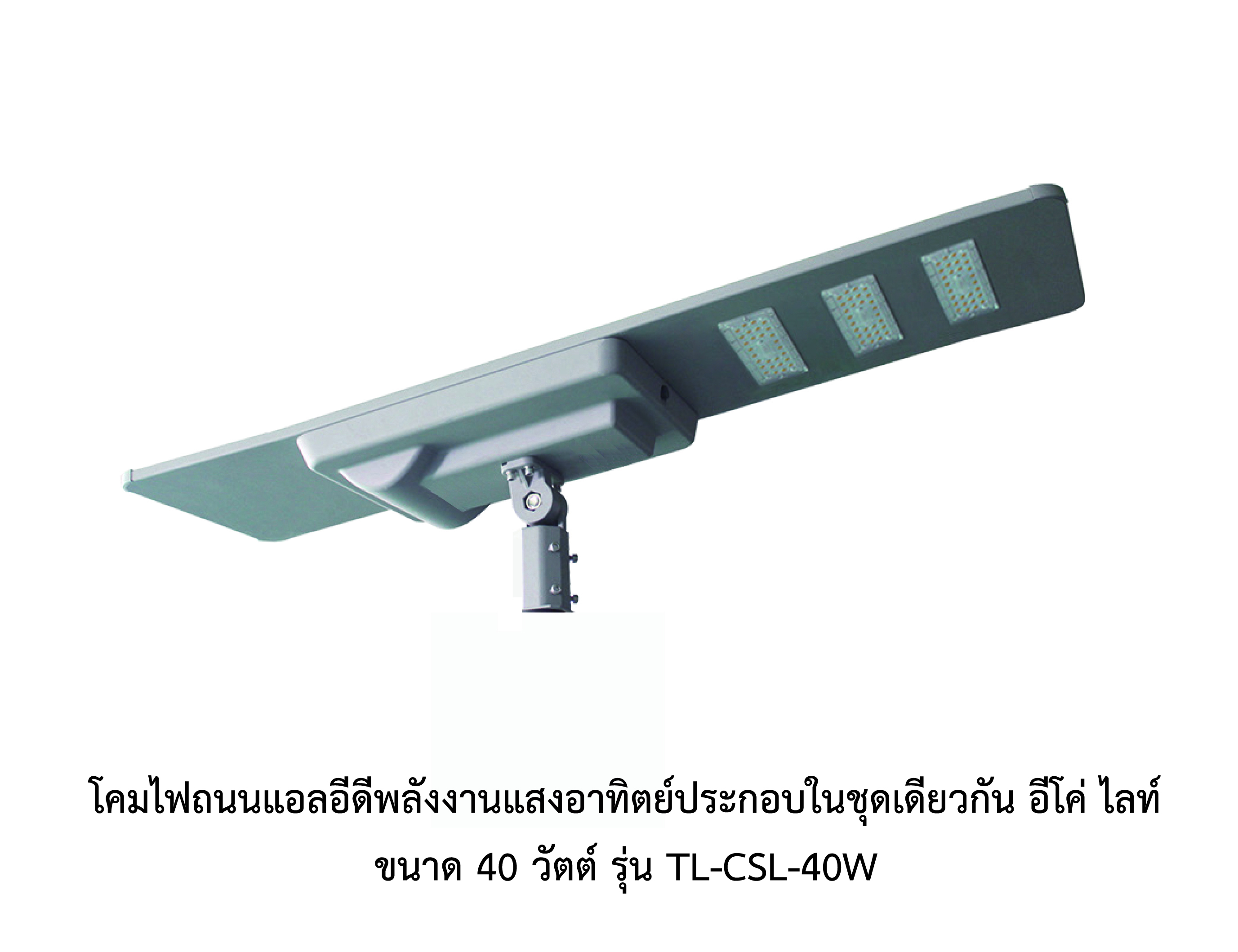 ชื่อทางการค้า: ชุดเสาไฟถนนโคมไฟแอลอีดีพลังงานแสงอาทิตย์แบบประกอบในชุดเดียวกัน (Integrated Solar Cell LED Streetlight with Pole) |