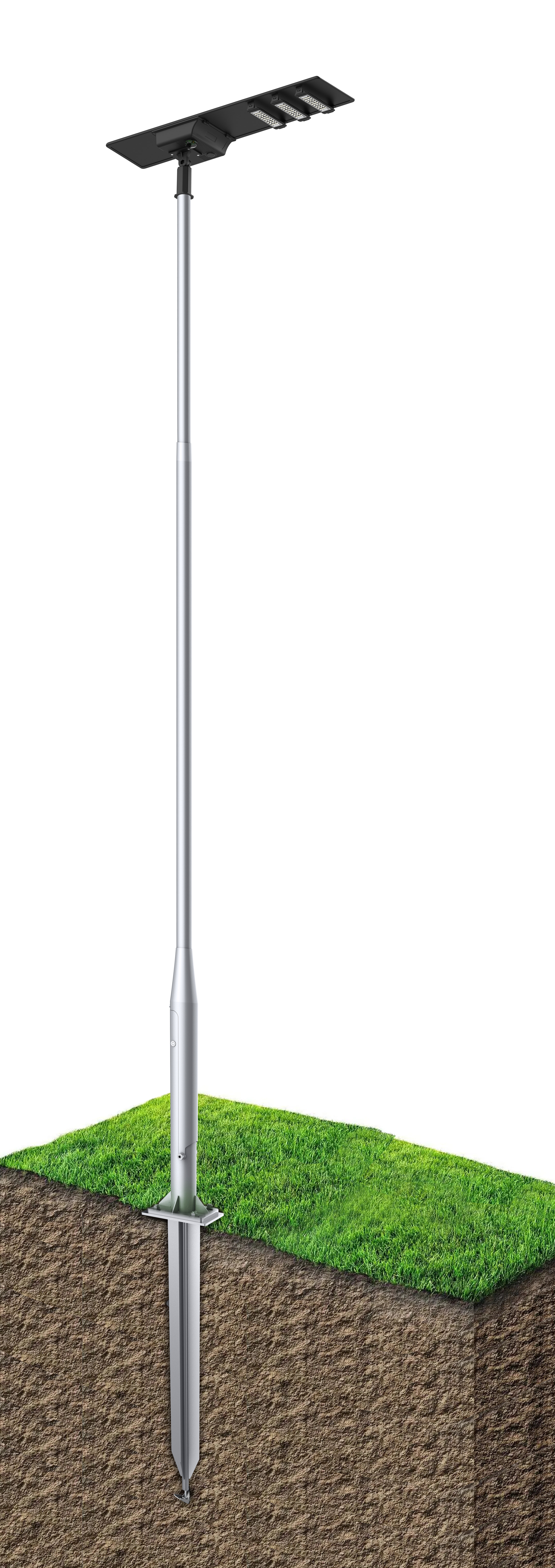 ชื่อทางการค้า: ชุดโคมไฟถนนแอลอีดีโซล่าเซลล์แบบมีกลไกบังคับเสาพร้อมเสาเข็มปีกเกลียว (Height adjustable pole and screw pile with LED solar cell street light) |