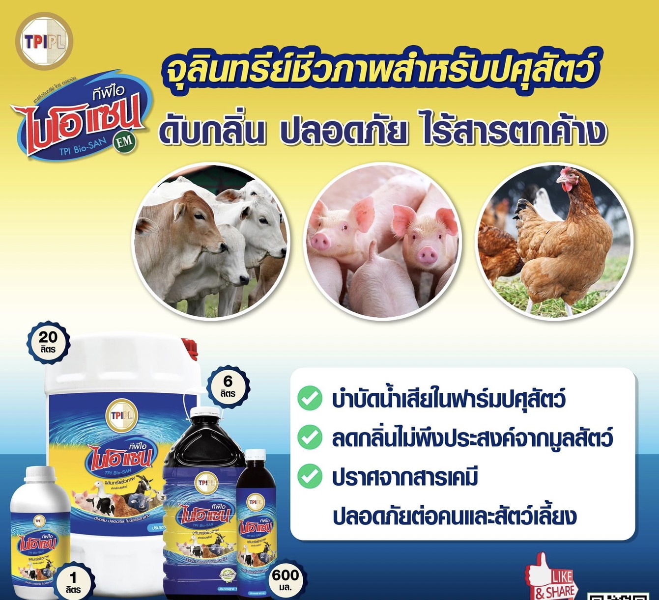 ชื่อทางการค้า: ทีพีไอ ไบโอแซน สำหรับปศุสัตว์ (TPI Bio-SAN) |