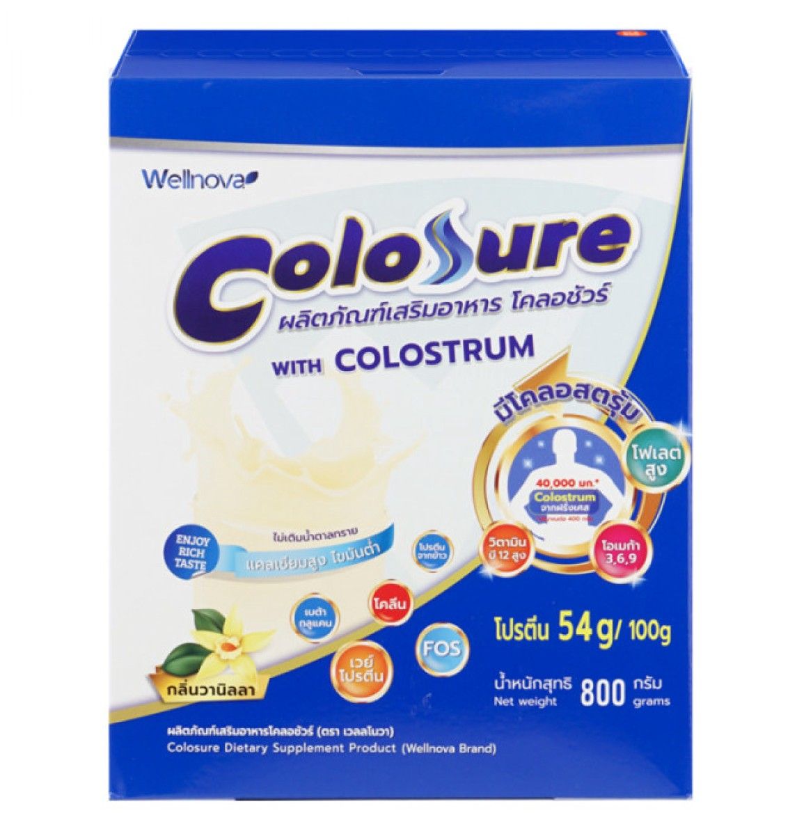 | 3) ผลิตภัณฑ์เสริมอาหาร โคลอชัวร์ (ตรา เวลลโนวา) กลิ่นวานิลลา ขนาด 800 กรัม (ชนิดถุงเติม 400 กรัม จำนวน 2 ถุง/กล่อง) | 850.00/กล่อง |