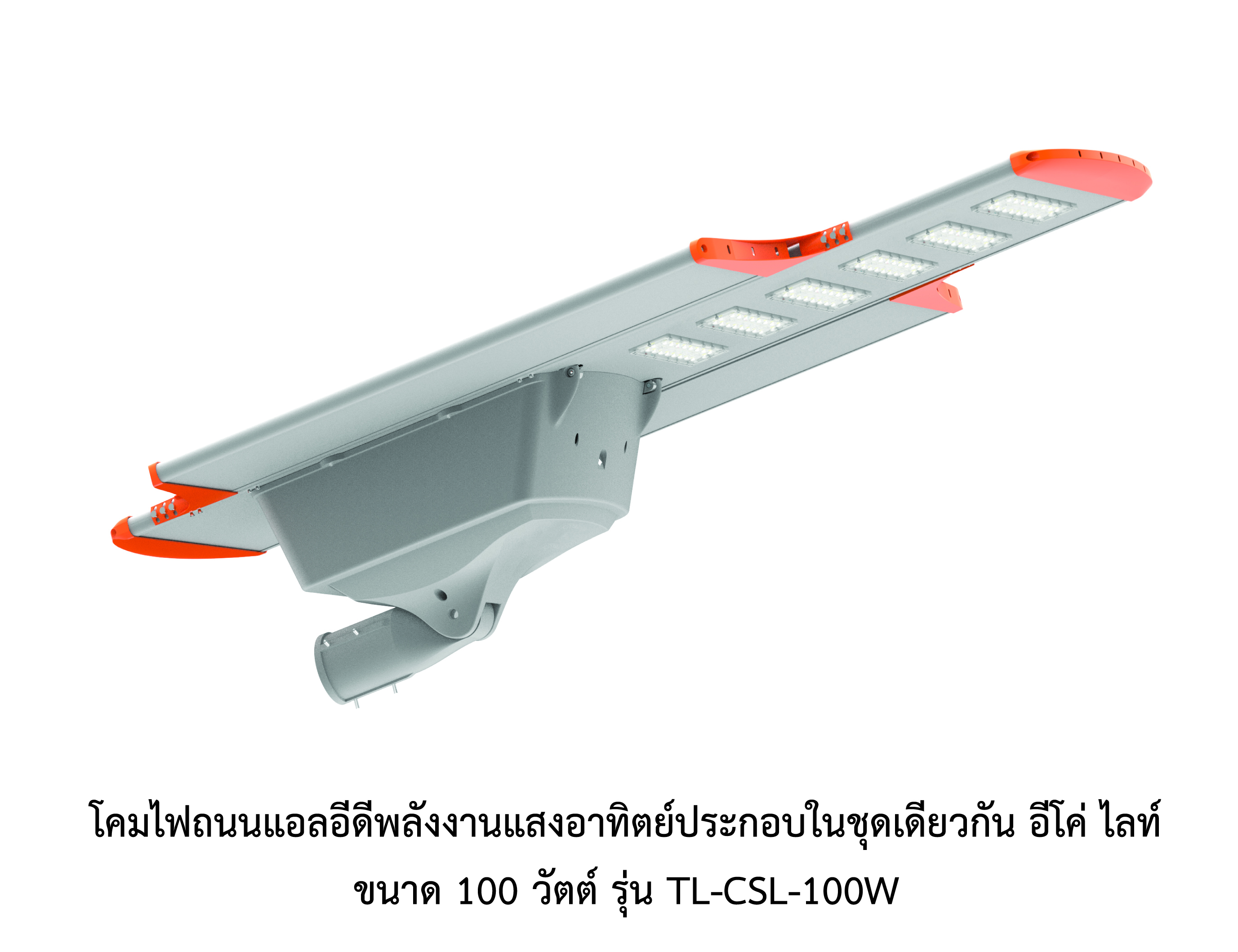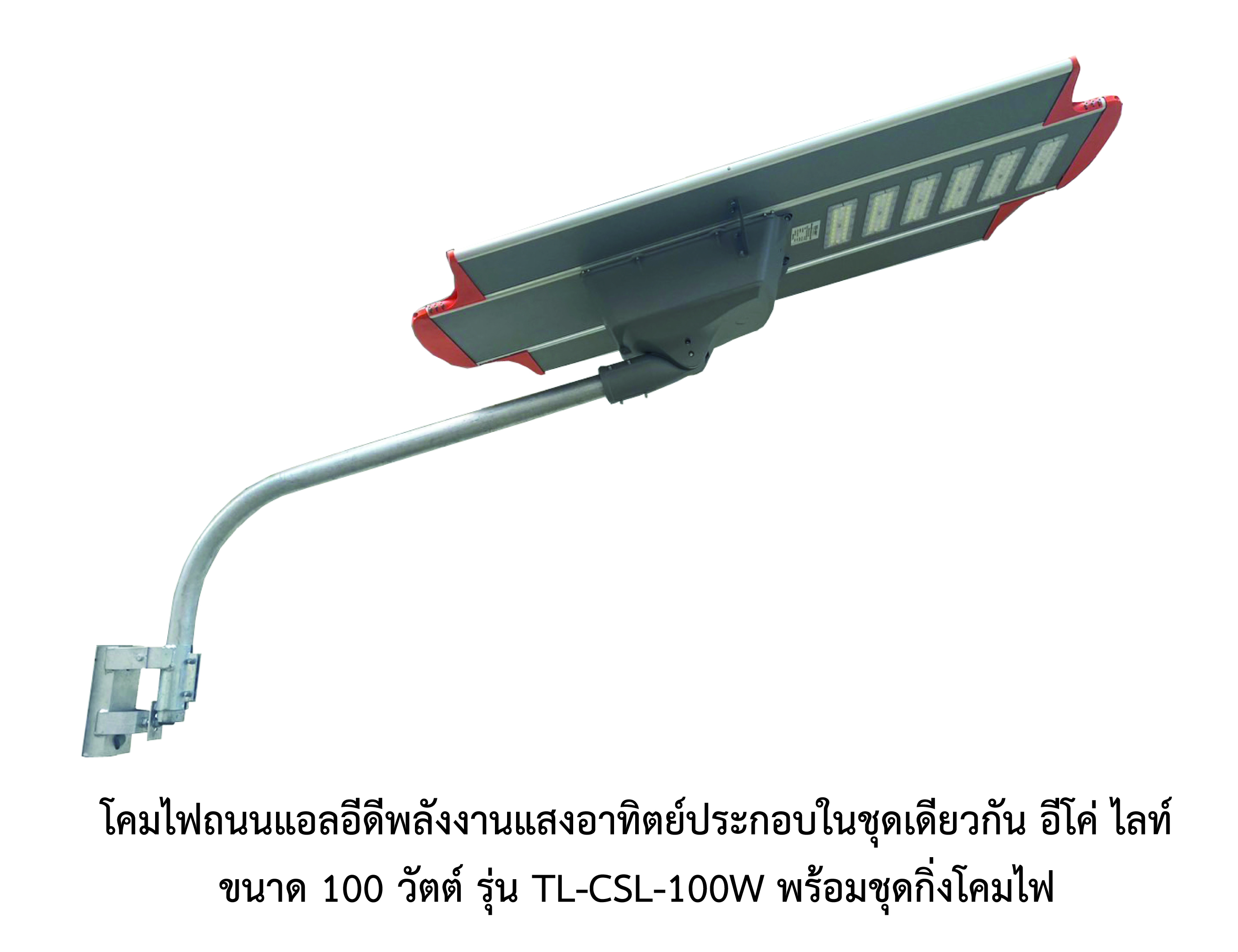 | 9) โคมไฟถนนแอลอีดีพลังงานแสงอาทิตย์ประกอบในชุดเดียวกัน อีโค่ ไลท์ ขนาด 100 วัตต์ รุ่น TL-CSL-100W | 70,000.00/โคม |