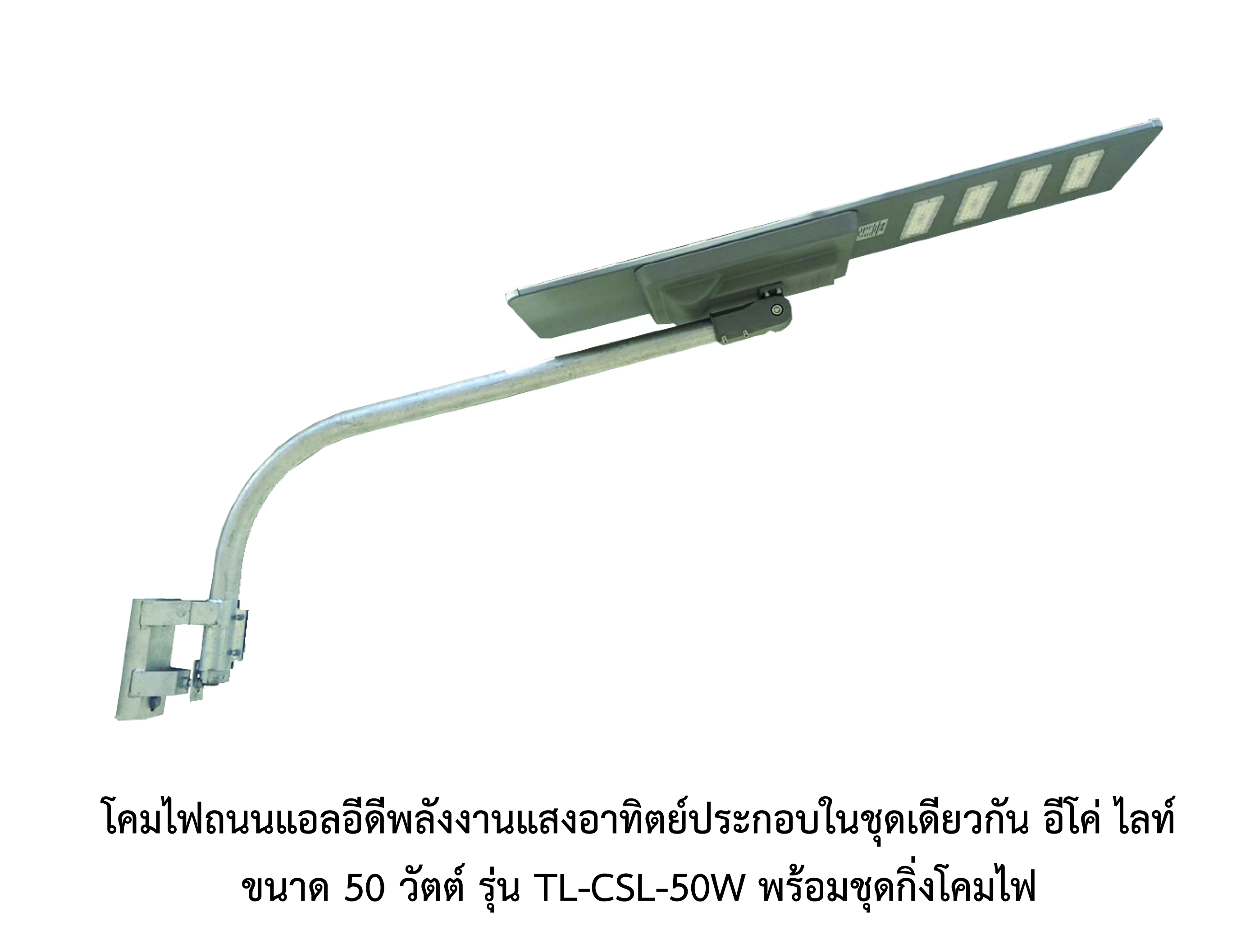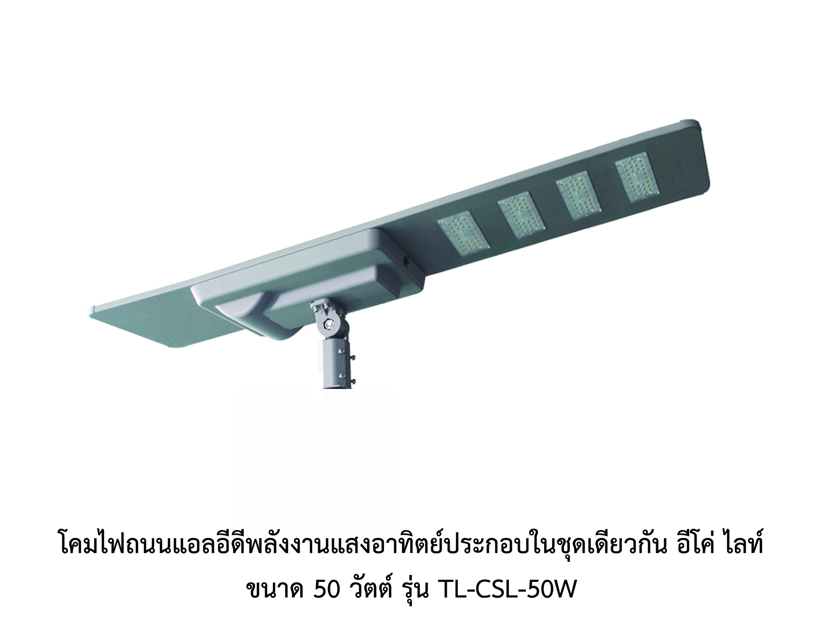 | 3) โคมไฟถนนแอลอีดีพลังงานแสงอาทิตย์ประกอบในชุดเดียวกัน อีโค่ ไลท์ ขนาด 50 วัตต์ รุ่น TL-CSL-50W | 41,000.00/โคม |