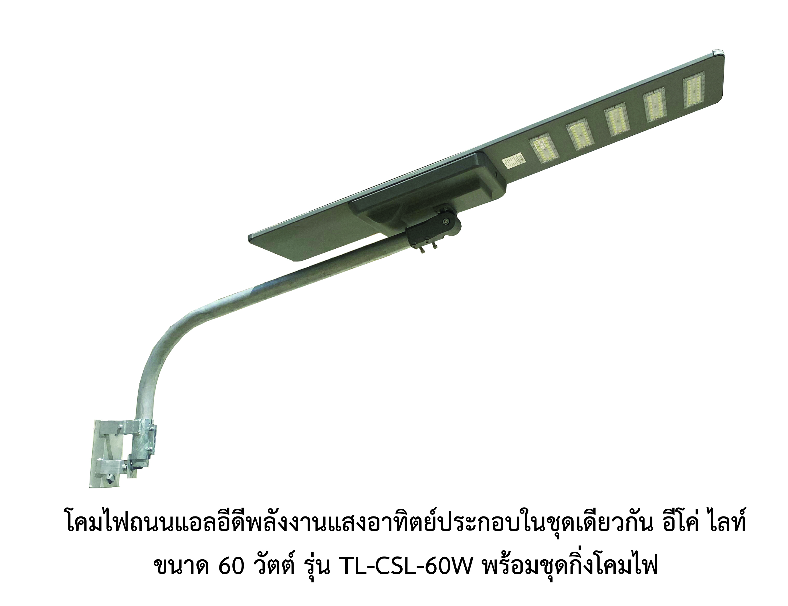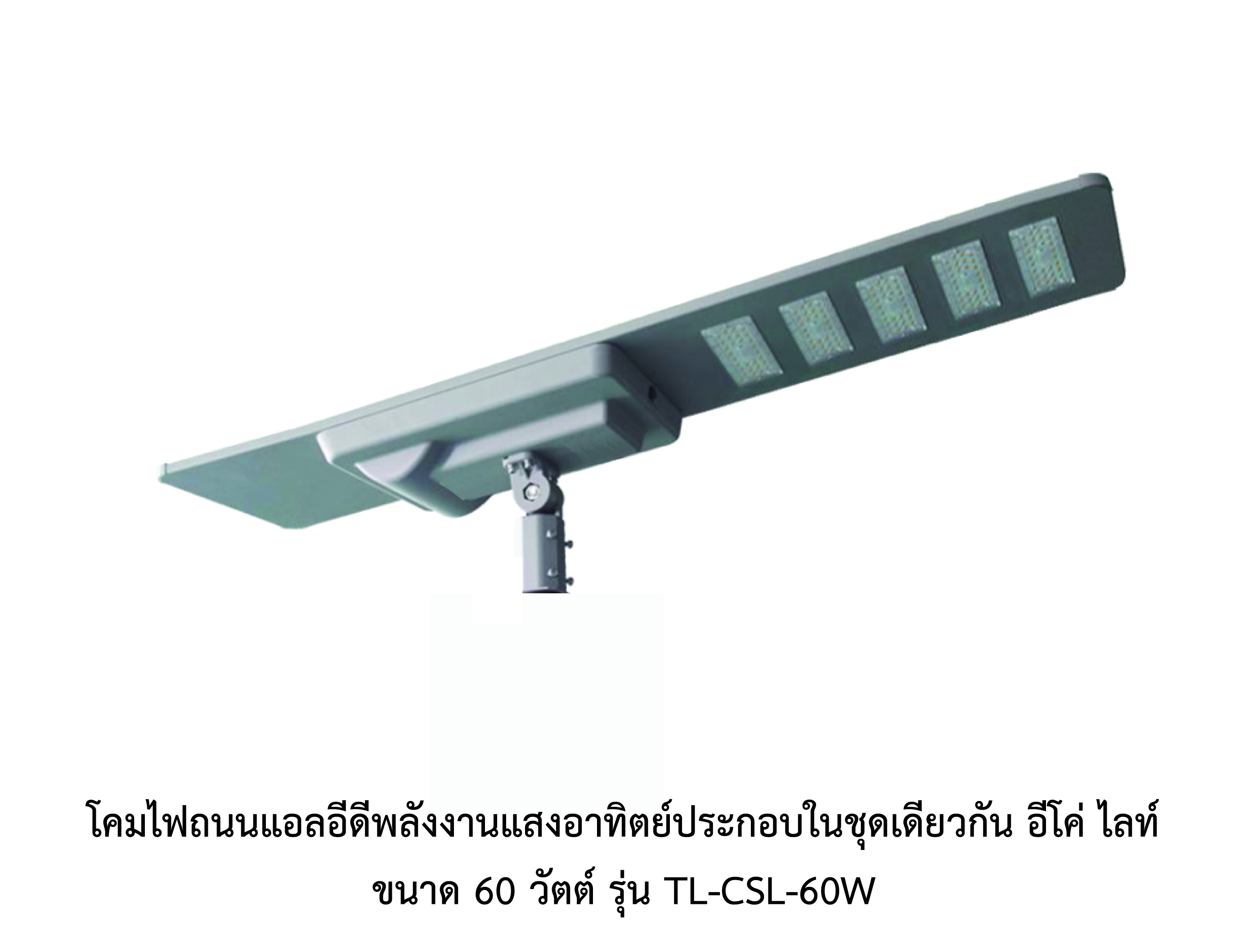 | 5) โคมไฟถนนแอลอีดีพลังงานแสงอาทิตย์ประกอบในชุดเดียวกัน อีโค่ ไลท์ ขนาด 60 วัตต์ รุ่น TL-CSL-60W | 45,000.00/โคม |