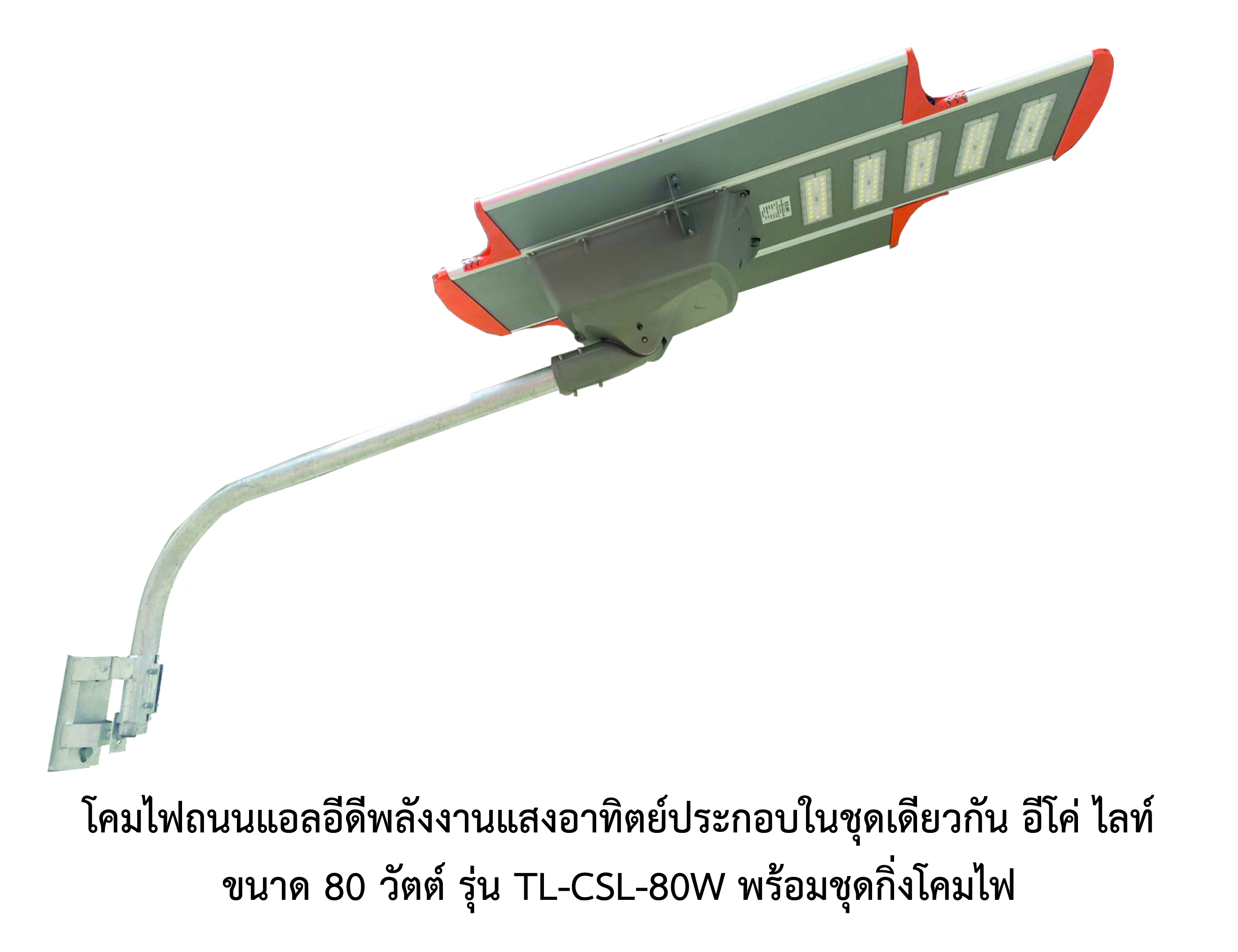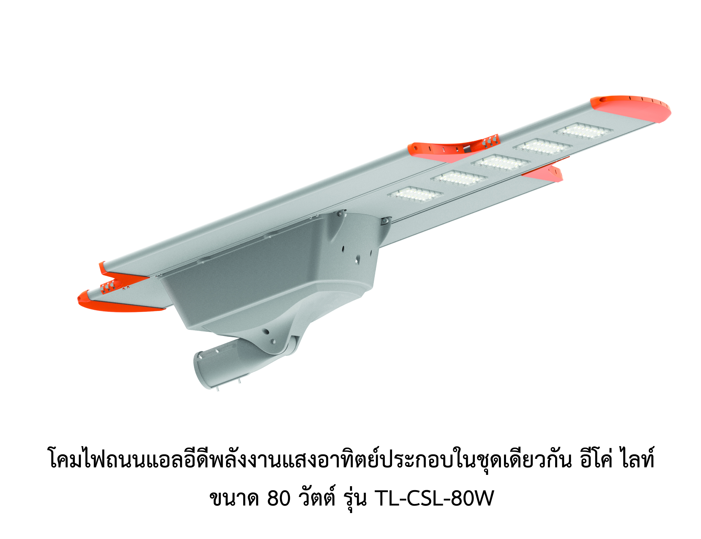 | 7) โคมไฟถนนแอลอีดีพลังงานแสงอาทิตย์ประกอบในชุดเดียวกัน อีโค่ ไลท์ ขนาด 80 วัตต์ รุ่น TL-CSL-80W | 68,000.00/โคม |