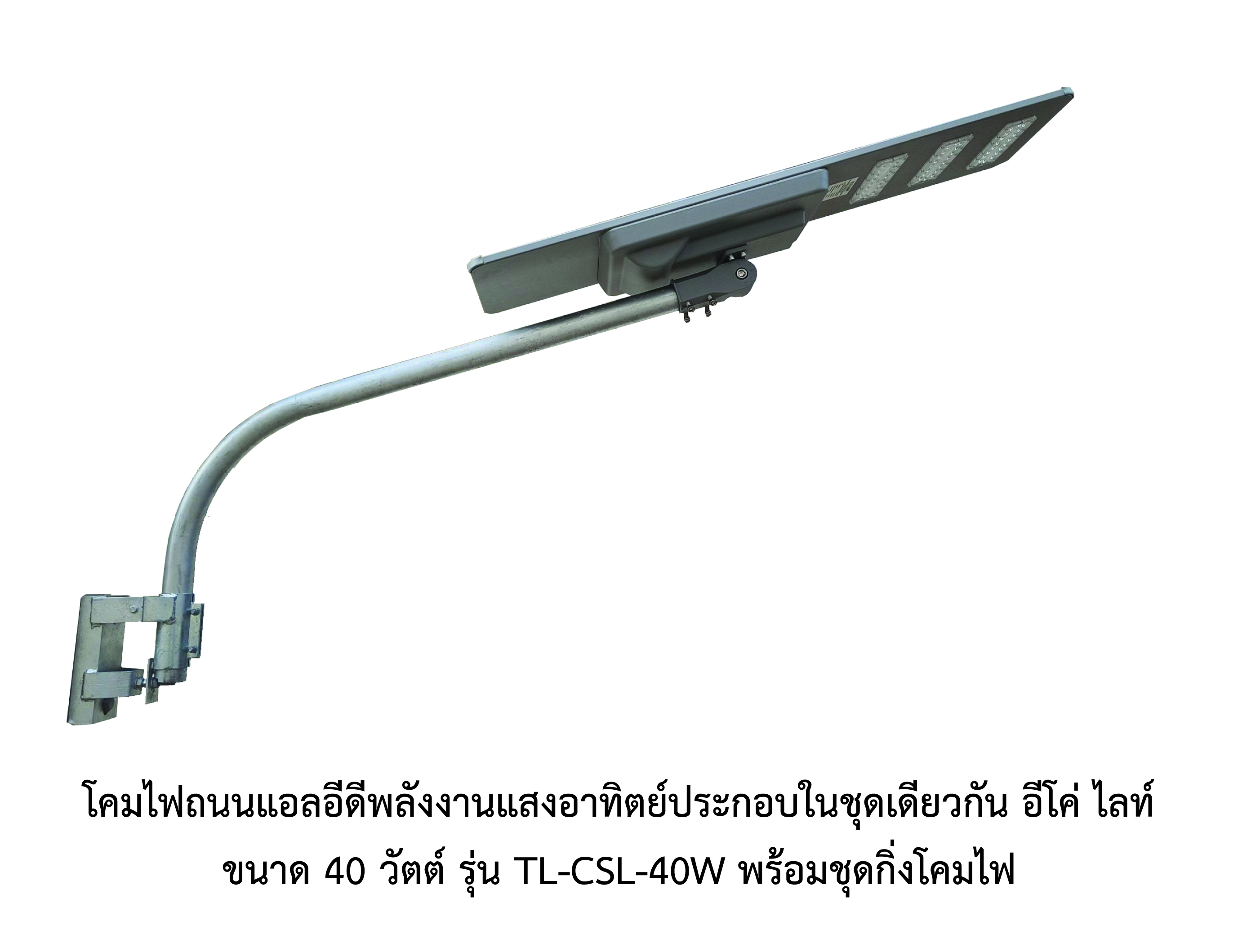 | 1) โคมไฟถนนแอลอีดีพลังงานแสงอาทิตย์ประกอบในชุดเดียวกัน อีโค่ ไลท์ ขนาด 40 วัตต์ รุ่น TL-CSL-40W | 38,000.00/โคม |