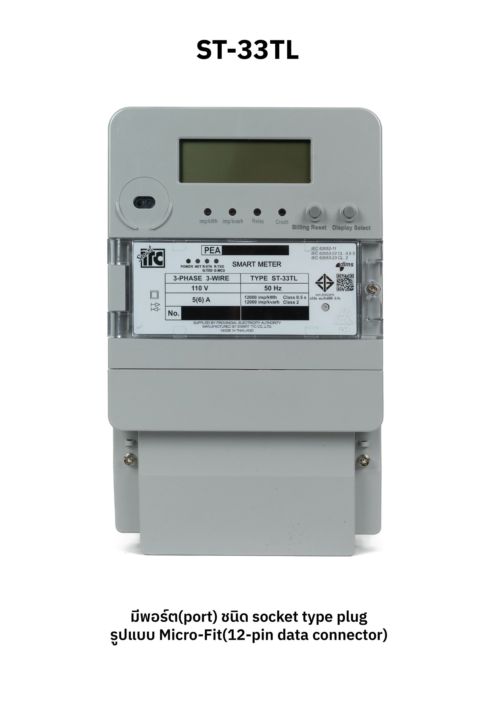 | 2) SmartTTC Smart Meter รุ่น ST-33TL - มีพอร์ต (Port) รองรับเครือข่ายไร้สายสำหรับอุปกรณ์ใช้พลังงานต่ำ (NB-IoT) หรือเครือข่ายที่มีประสิทธิภาพสูง (3G หรือ 4G) - มิเตอร์ขนาดประมาณ 180 X 75 X 295 มิลลิเมตร - มิเตอร์มีน้ำหนักประมาณ 1.5 กิโลกรัม | 4,118.00/เครื่อง |