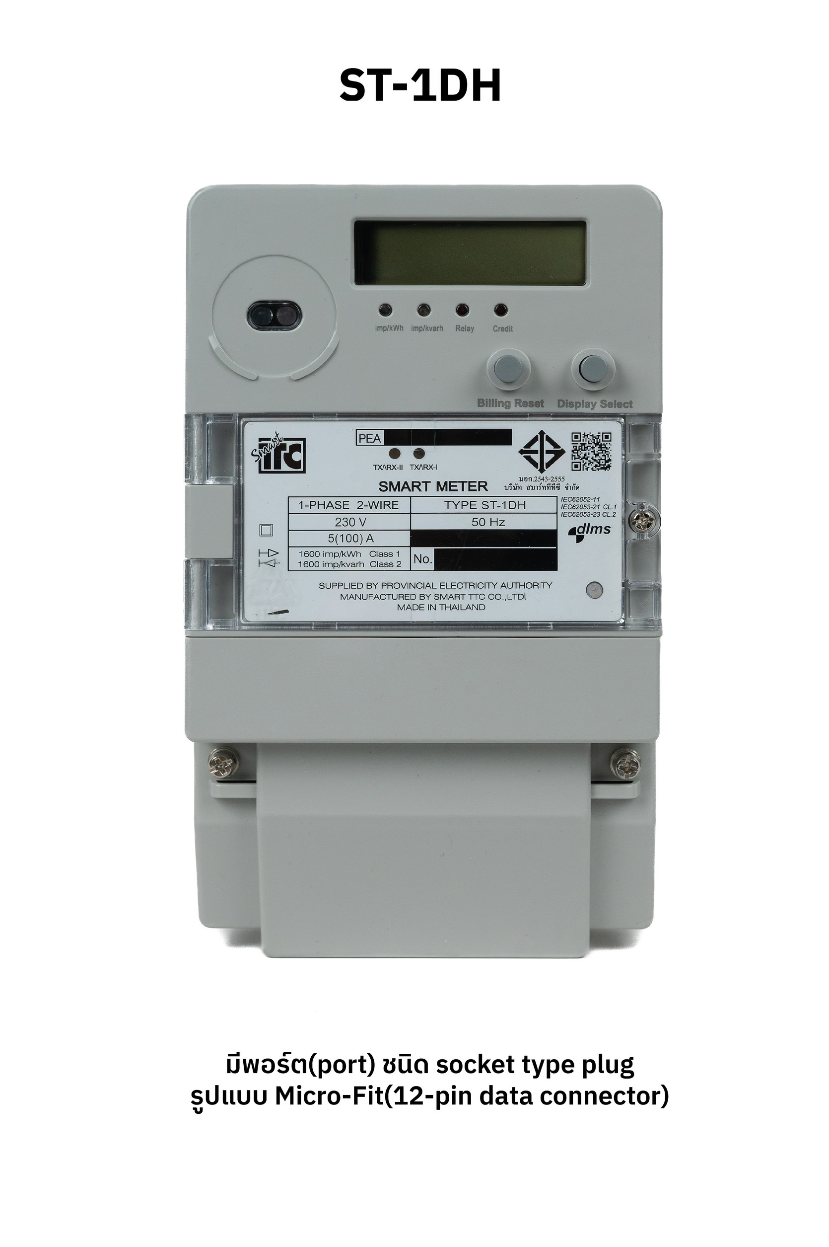 | 4) SmartTTC Smart Meter รุ่น ST-1DH - มีพอร์ต (Port) รองรับเครือข่ายไร้สายสำหรับอุปกรณ์ ใช้พลังงานต่ำ (NB-IoT หรือ PLC) หรือเครือข่ายที่มีประสิทธิภาพสูง (3G หรือ 4G) - มิเตอร์ขนาดประมาณ 125 X 72 X 217 มิลลิเมตร - มิเตอร์มีน้ำหนักประมาณ 1.0 กิโลกรัม | 2,632.00/เครื่อง |