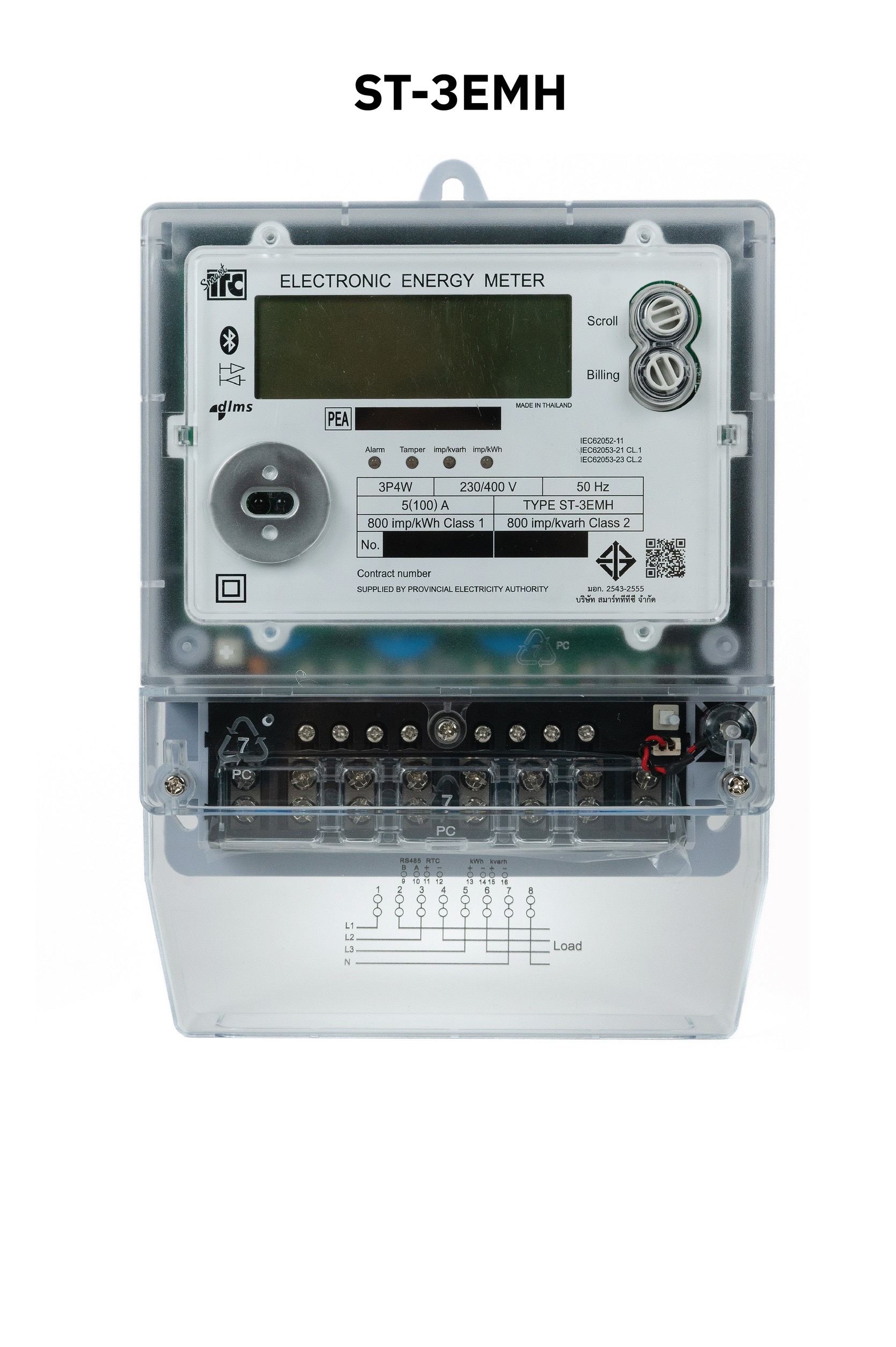 | 6) SmartTTC Smart Meter รุ่น ST-3EMH (E-Meter) - เชื่อมต่อกับอุปกรณ์ใช้พลังงานต่ำ (Wireless communication Bluetooth) - มิเตอร์ขนาดประมาณ 170 X 60 X 230 มิลลิเมตร - มิเตอร์มีน้ำหนักประมาณ 1.2 กิโลกรัม | 2,866.00/เครื่อง |