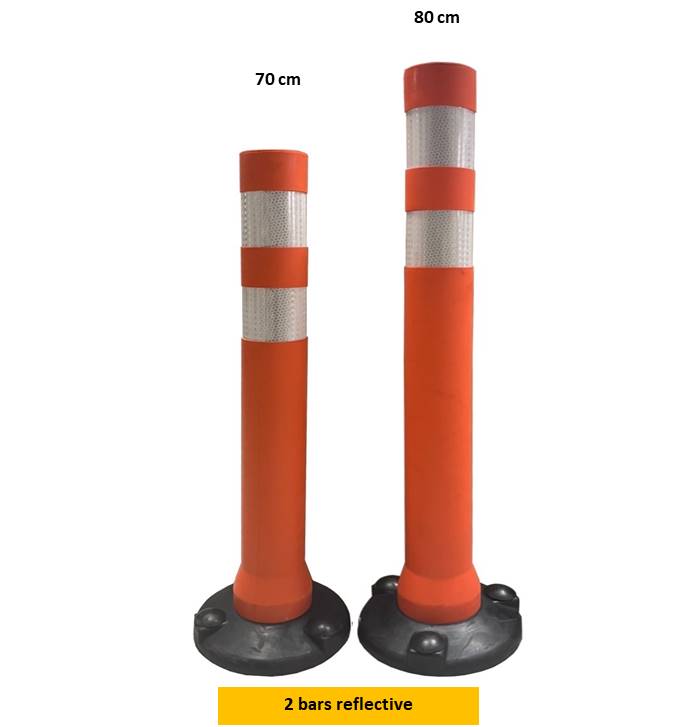 | 6) รุ่น-006 เสาจราจรล้มลุก จากยางธรรมชาติ (เสริมไส้ยางจากยางธรรมชาติที่โคนแกนเสา) ความสูง 80 เซนติเมตร สติ๊กเกอร์สะท้อนแสง 2 แถบ ประกอบด้วย - เสาจราจรล้มลุก จากยางธรรมชาติ ความสูง 80 เซนติเมตร จำนวน 1 ต้น พร้อมเสริมไส้ยางจากยางธรรมชาติที่โคนแกนเสา - สติ๊กเกอร์สะท้อนแสง จำนวน 2 แถบ ขนาดความกว้าง 75 มิลลิเมตร - ฐานเสาจราจร จากยางธรรมชาติ เส้นผ่านศูนย์กลาง 20 เซนติเมตร - น็อตและพุก ติดตั้ง จำนวน 3 ชุด - น้ำหนักโดยรวม ประมาณ 3.2 กิโลกรัม (ไม่รวมน้ำหนักน็อตและพุก ที่ใช้สำหรับติดตั้ง) | |